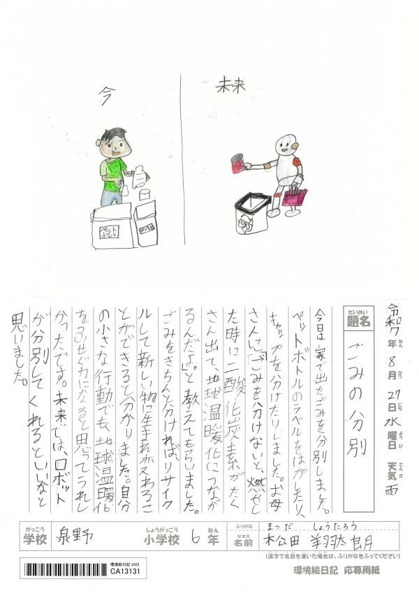「友達とゴミひろいをした。」