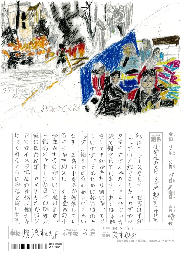「小学生のスピーチで平和のきっ..」