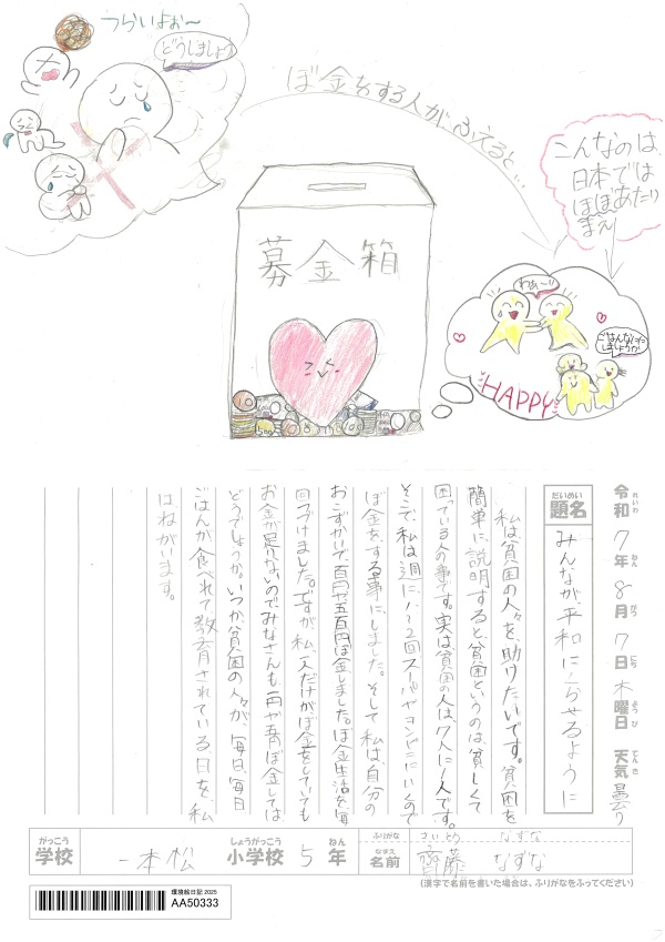 「みんなが、平和にくらせるように」